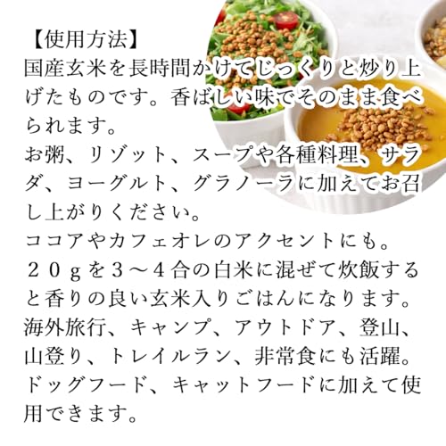 - お湯でふやかすとふやかすと玄米粥になり、離乳食や介護食にもなる