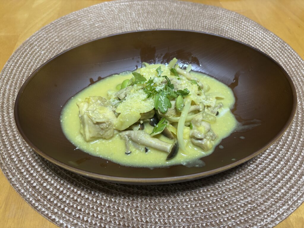 | 内容 | 調理済みチキンのクリーム煮(タイ産鶏肉、カリフラワー、えだまめ)、玉ねぎ、ぶなしめじ、パセリ(イタリアンパセリ)、にんじん、レモン果汁、クミン、カレー粉など |