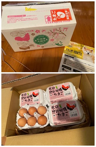 • ふるさと納税10000円の寄付で卵48個。1つ50円と安く見積もっても2400円相当。