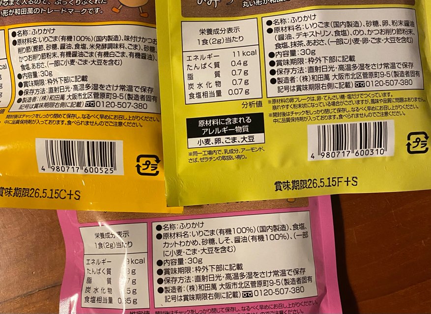 ふりかけには主に4種類の添加物が含まれていると言われています。 その3種類は以下になります。