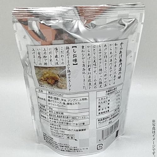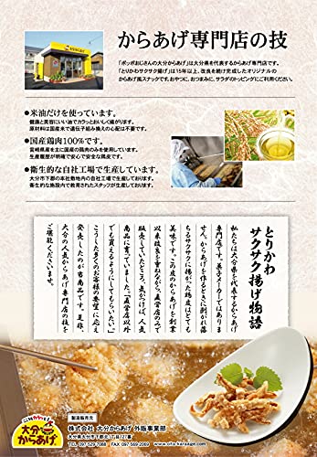 - 国産の鶏皮を使用し、米油でさっくり揚げている