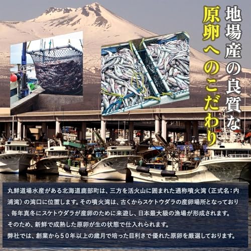- 刺し網漁で漁獲した北海道産たらこ使用