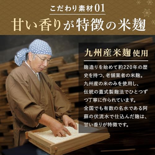 • 麹菌は甘みの出やすい長毛菌を採用し、手間や時間を惜しまず製造され、甘味と旨みにこだわっています