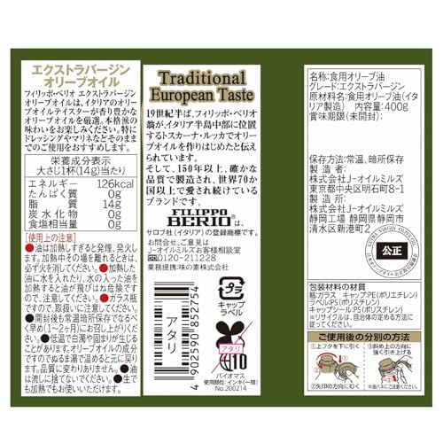 - 収穫後4時間以内に搾油、「コールドプレス製法」で、オリーブの風味を損なわない