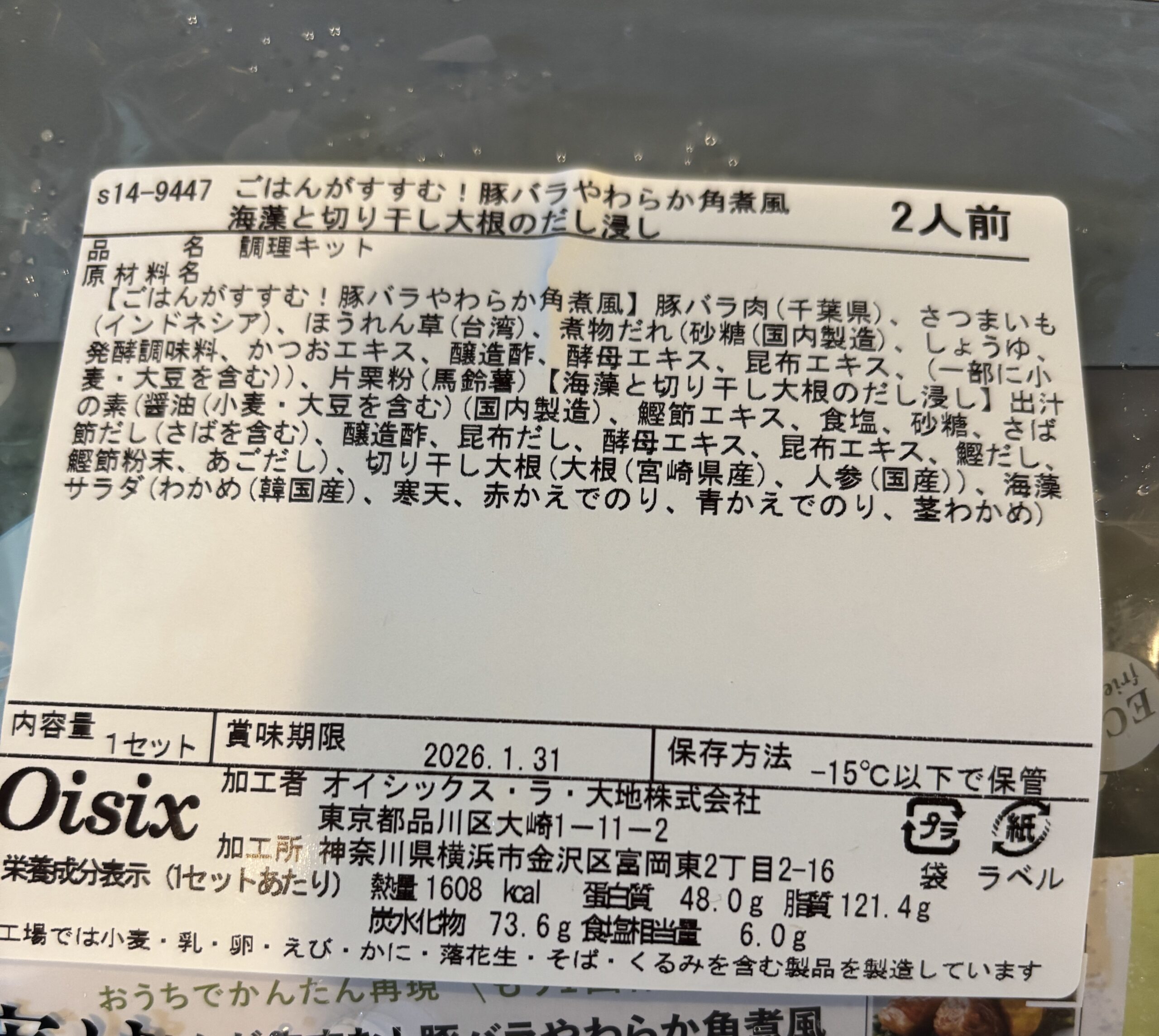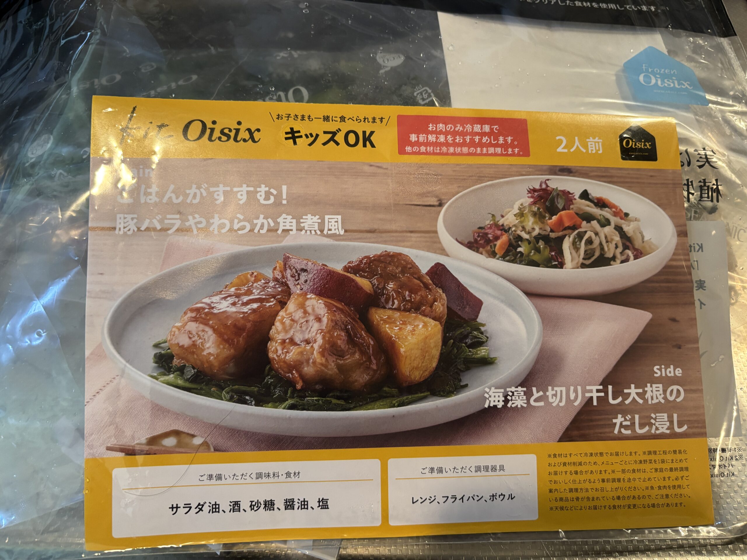 オイシックスのミールキットに「ごはんがすすむ!豚バラやわらか角煮風・海藻と切り干し大根のだし浸し」という商品があります。