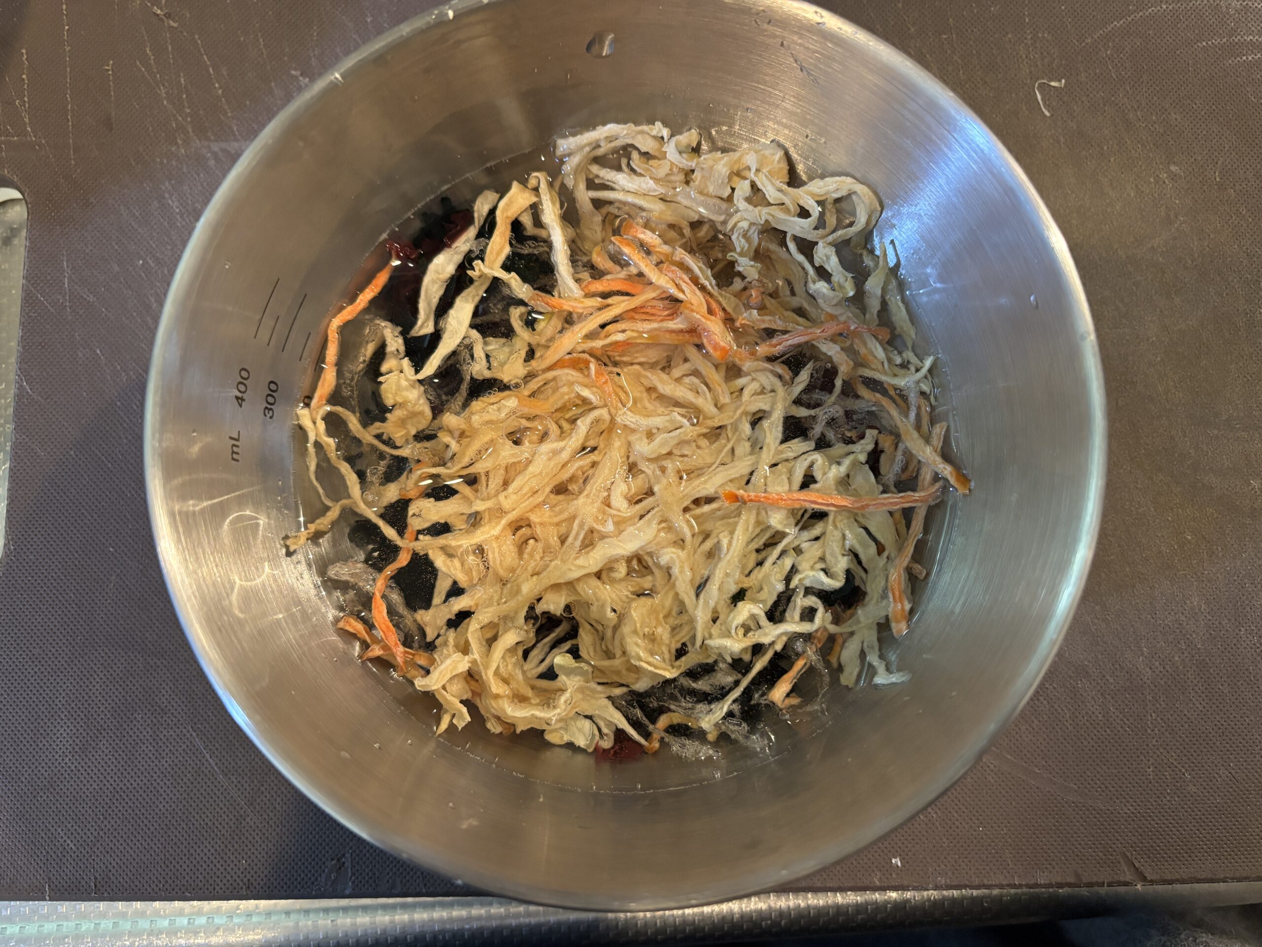 海藻と洗った切り干し大根を水に浸して5分ほど浸しておきます。