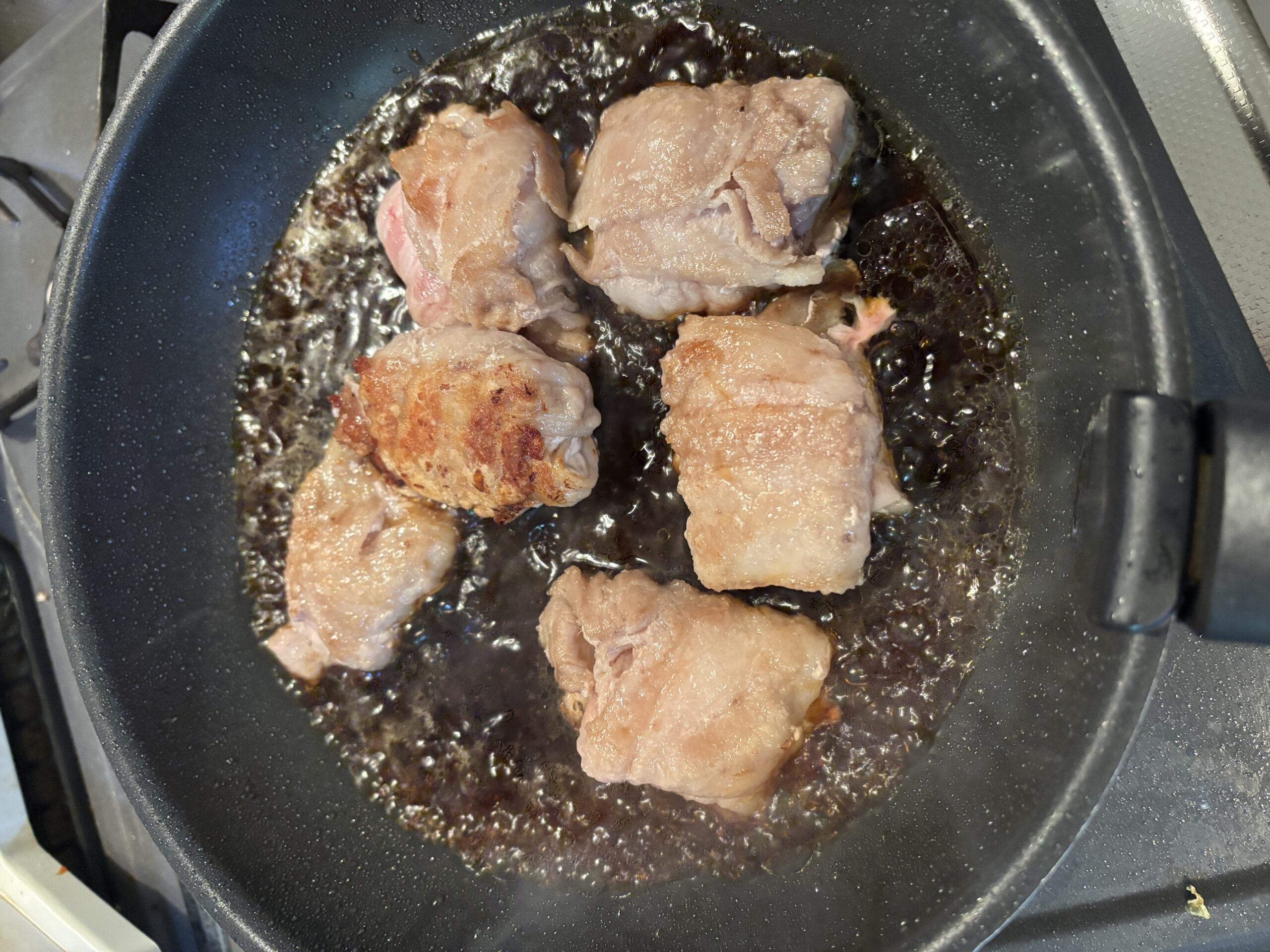 時々豚肉を裏返しながら6分ほど煮込みます。