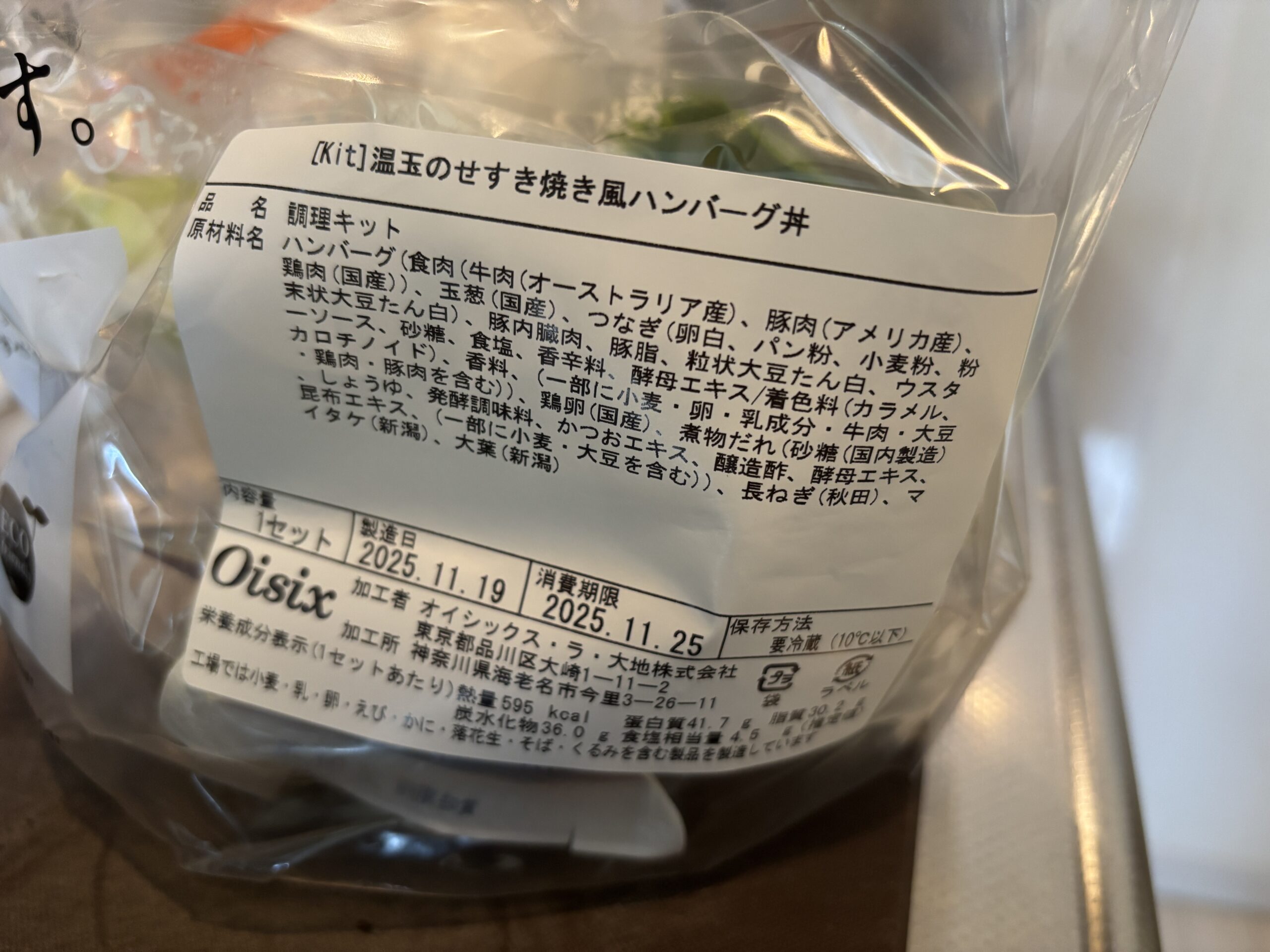 オイシックスのミールキットに「温玉のせすき焼き風ハンバーグ丼」という商品があります。