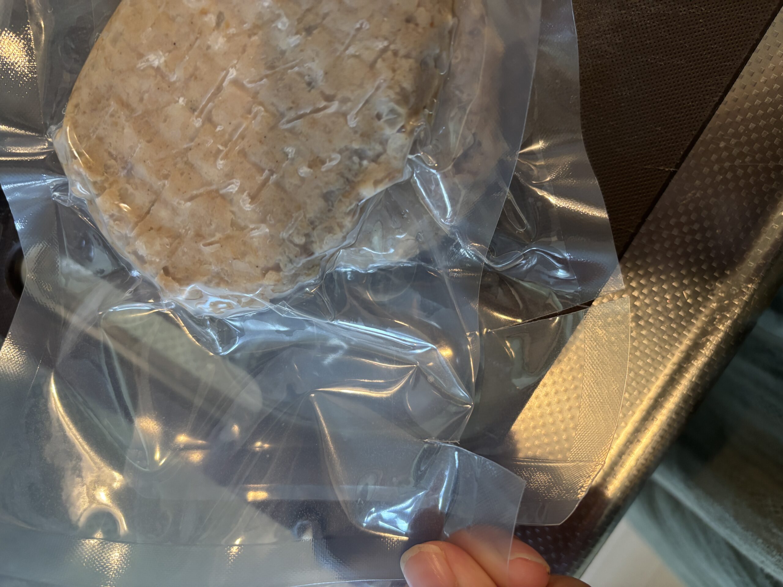 ハンバーグをレンジで加熱します。約2分くらい少し袋の口を切り温めます。
