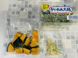 材料を俯瞰してみたときに割高な印象ですが、かぼちゃがカットされていたので下ごしらえの手間がグッと減り、短時間に仕上がる手軽さを考えると十分価値ありだと思います。