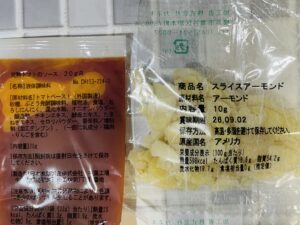 アーモンドはオーブントースターで少し焼き色がつくまで焼いてから入れると香ばしくなるのでおススメです☆