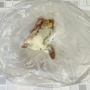 鶏肉はポリ袋に入れて、塩・コショウし、小麦粉をまぶし下味を付けます。