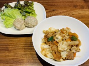 今回の献立は、冷凍の回鍋肉の素とカット野菜を一緒に炒めるだけで味が決まる、非常に簡単なメニューでした。