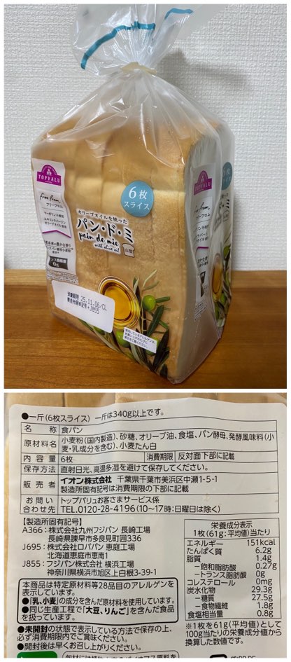 この食パンはバターではなく、オリーブオイルを使っているレアな食パン。離乳食には控えたいけど、大人が食べる食パンとしてはバターよりはマシだよ。