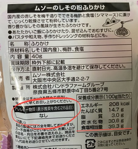 市販ゆかりのアレルギー表示(特定原材料)とコンタミの注意点