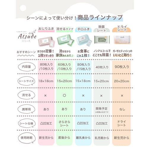 一方、おしりふきや手口ふきは、化粧品扱いであり、一般的に乳幼児を対象にして作られています。